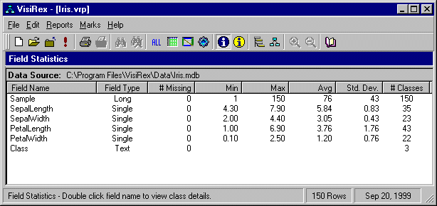 The Field Statistics Screen presents a report showing the statistics collected for every field. Field Statistics... Features