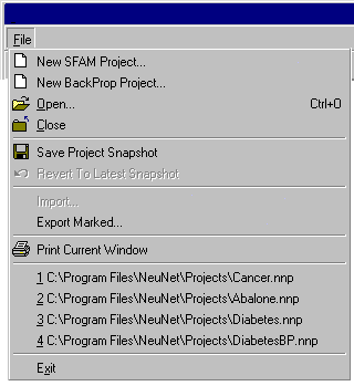 - The initial setup of NeuNet Pro populates this list with 8 sample projects.