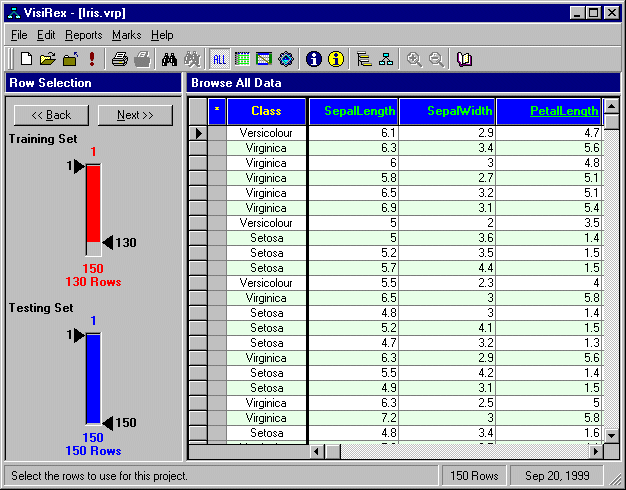 - Choose what rows you wish to use for testing the performance of the extracted rules.